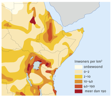Als je kijkt naar de plaatjes (links) zie je dat er gelijk iets opvalt. De hooggelegen gebieden zijn dichtbevolkt en de laaggelegen gebieden zijn juist dunbevolkt. In de meeste delen van de wereld is dat anders, maar in Oost-Afrika is het dus andersom, maar hoe komt dat nou eigenlijk?